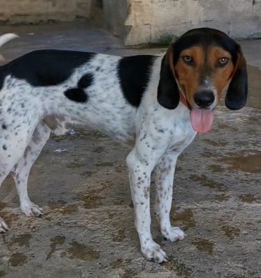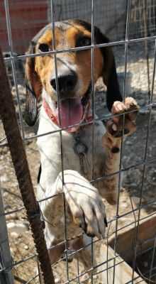 Anton wurde mit seinem bereits vermittelten Hundekumpel Aiko als Jagdhunde unter schrecklichen Bedingungen an einer Kette gehalten. Es mangelte an allem - Hygiene, Wasser, Futter und Behausung! Glücklicherweise wurden Tierschützer auf diese furchtbare Situation aufmerksam und veranlassten, dass die Tiere dem Besitzer weggenommen wurden. Nun sind sie in unserer Obhut und warten auf ihr endgültiges Zuhause. Aiko wurde inzwischen bereits vermittelt, der hübsche Anton wartet noch auf sein Glück.
