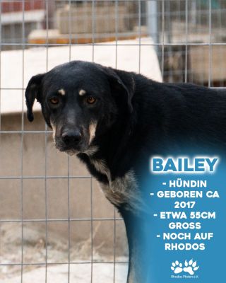 Hat Bailey einmal Vertrauen gefasst, so lässt sie sich gerne streicheln und mit Leckerlies verwöhnen. Sie sehnt sich nach einem verlässlichen Menschen, dem sie sich öffnen kann, und der ihr dabei hilft, wieder Vertrauen in die Menschenwelt zu fassen. Ein einfühlsamer Begleiter, der behutsam ihre Ängste überwindet und ihr dabei hilft, ihre natürliche Neugierde auf die Welt um sie herum zu entdecken, wäre ideal für sie.