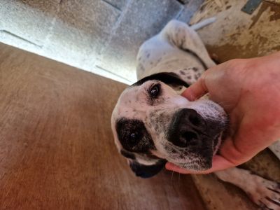 Nila ist eine zurückhaltende, eher ängstliche Hündin. Menschen können sich der Hundedame aber problemlos nähern, auch von fremden Personen lässt sie sich anfassen. Dabei scheint sie die Streicheleinheiten von diesen aber nicht besonders zu genießen. Als Angstbeißer schätzen wir sie nicht ein.