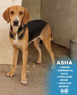 Asha wurde gemeinsam mit einer weiteren Hündin am Strand gefunden und zunächst in einer Pension untergebracht.
