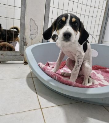 Leo ist der Schüchternste in der Runde. Er braucht ein wenig Zeit um aufzutauchen, doch freut sich dann auch sehr über Streicheleinheiten. Bisher verhält er sich eher ruhig, doch mit ein wenig Ruhe in einem häuslichen Umfeld glauben wir, dass er sich zu einem ganz typischen Welpen entwickeln wird.