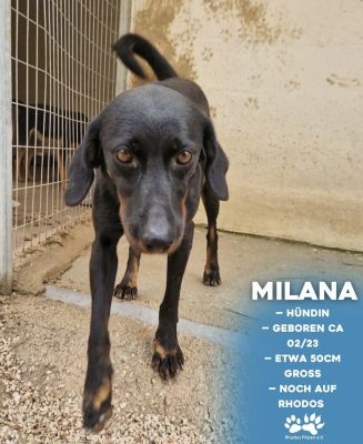 Die schöne Milana wurde als Welpe ausgesetzt und ins Tierheim gebracht, doch das hat ihrer fröhlichen Art keinen Abbruch getan. Sie sprüht nur so vor Lebensfreude! Betritt man ihren Zwinger, kann sie vor Aufregung kaum stillstehen, genießt jedoch jede liebevolle Streicheleinheit.