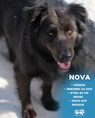 Zurzeit teilt sie sich ihren Zwinger mit einer Hündin. Generell zeigt sich Nova im Shelter stets freundlich und sozial und ist verträglich mit Hündinnen sowie Rüden.