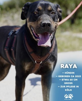 Raya ist etwa zwei Jahre jung und stammt ursprünglich von der Insel Rhodos. Vermutlich ist sie ein Cane-Corso-Mix & bringt die schönsten Eigenschaften mit: Kraft, Treue, Intelligenz und ganz viel Herz.