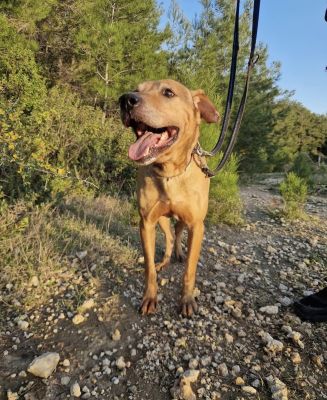 Über den Auslauf freut er sich so sehr, dass er teilweise stark an der Leine zieht; vor allem direkt nachdem man ihn aus dem Zwinger geholt hat. Dabei bringt er ordentlich Kraft mit, lässt sich aber auch gut korrigieren. In seinem neuen Zuhause darf er das Hunde-1x1 noch lernen – dazu gehört natürlich auch die Leinenführigkeit.