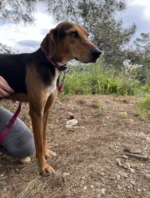 Ajax zeigt sich bei uns als ein neugieriger, aber noch zurückhaltender Rüde, der vor Hektik zurückschreckt. Gerne nimmt er jedoch Streicheleinheiten an, wenn man ihm entspannt gegenübertritt. Leider stresst ihn das Leben im Tierheim zunehmend, was sich auch an seinem geringen Körpergewicht zeigt.